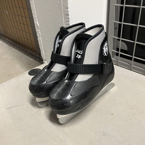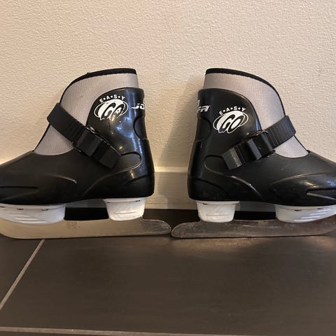 Jofa Easy Go ishockeyskridskor i barnstorlek 28/29. Skridskorna är svarta med detaljer i lila och grönt. Utrustade med spänne för justerbar passform. Avsedda för barn och anpassade för ishockey och skridskoåkning.