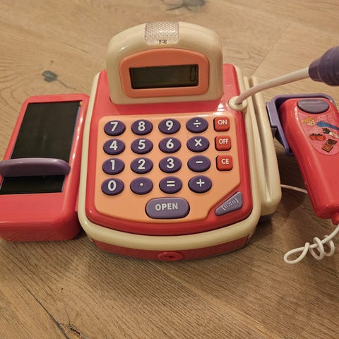 Kassadisk med scanner, kundvagn och tillbehör