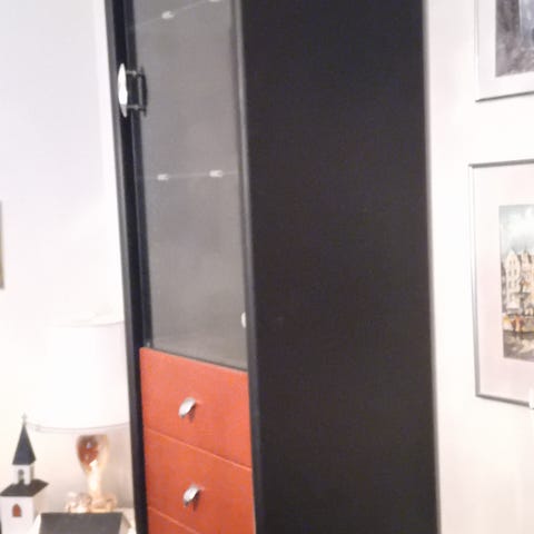 2 st off-white 100x40x40 (HxBxD) vitrinskåp med två lådor och tre glashyllor, utan knoppar eller handtag, 900:-/st