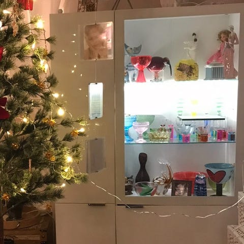 2 st off-white 40x40x40 (HxBxD) vitrinskåp med en glashylla, utan knoppar eller handtag, 300:-/st