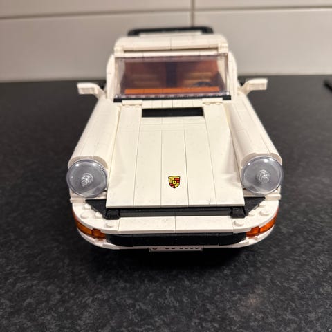 LEGO Creator Volkswagen Beetle byggsats nummer 10252 i blå färg. Setet innehåller detaljerade delar för att bygga en Volkswagen Beetle-modell med öppningsbara dörrar och taklast med surfbräda och resväska.