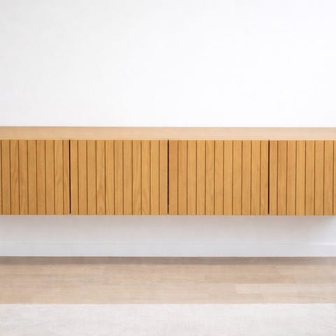 Skåpet saknar två dörrar på höger sida, se bilder. På högersida är det öppet och har två synliga hyllplan istället. Skåpet har lite synliga defekter, lite märken här och där.
