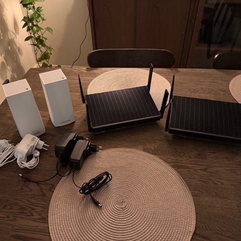 Säljer nu mitt högpresterande mesh-system från ASUS (modell ZenWiFi XT8 AX6600, 2-st, 1 svart, 1 vit). Detta är ett av marknadens mest hyllade mesh-system som ger extremt snabb och stabil täckning i hela hemmet. Medföljer en extra nätadapter samt ett väggfäste.