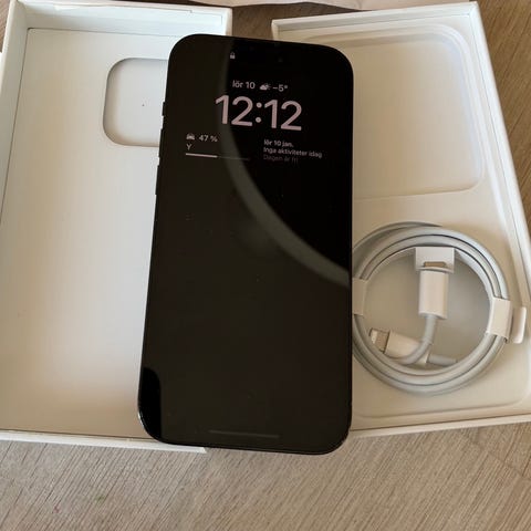 Säljer min 14 PRO då jag har uppgraderat till en nyare modell. Som ni kan se på vissa bilder så är baksidan av telefonen sprucken, fick den tidigt in på användningen men har hållit sig ändå stabilt i 3 år! Det finns tydliga repor som på kanterna och väldigt lite på själva glasskärmen. Den är fortfarande dock i bra skick och en av de bättre telefonerna jag haft genom åren! Batterihälsan är dessvärre på 79% så hade rekommenderats att byta den ifall ni vill ha längre batteritid. Allt medföljs förutom laddare för jag har lyckats tappa bort den på något sätt. Pris kan diskuteras!