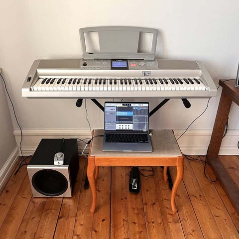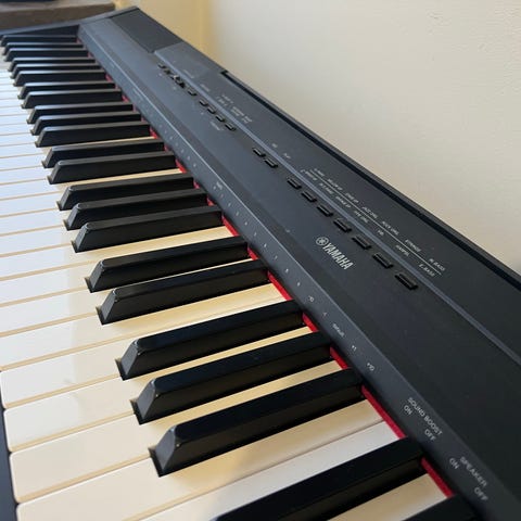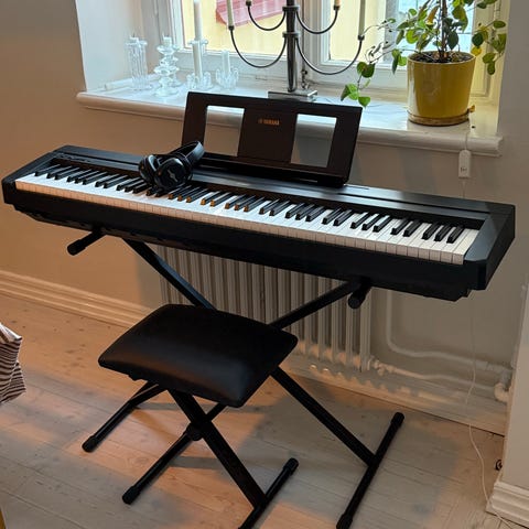 Digitalt piano från Yamaha med 88st "weighted" tangenter som gör att dem känns som ett riktigt piano. Har MIDI funktion över USB vilket gör att man kan spela i en DAW med den. Flera inbyggda instrument, och väldigt bra högtalare! Ca 5 år gammalt men mycket varsamt användt och väl omhändertagen.