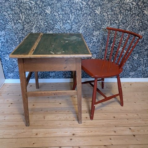 Säljer en gammal skolbänk. Välanvänd och sliten, se bilder. Men är gullig och fyller sin funktion:)