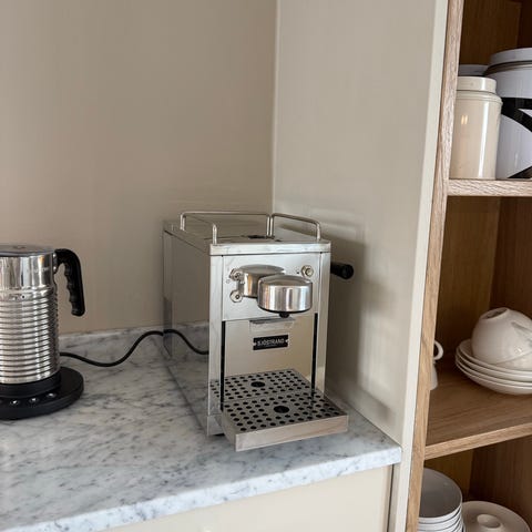 Sjöstrand espressomaskin tillverkad i rostfritt stål. Maskinen har en kompakt design med ett avtagbart droppgaller. Passar för hemmabruk och mindre kontor. Mjölkskummare från samma märke kommer med.
