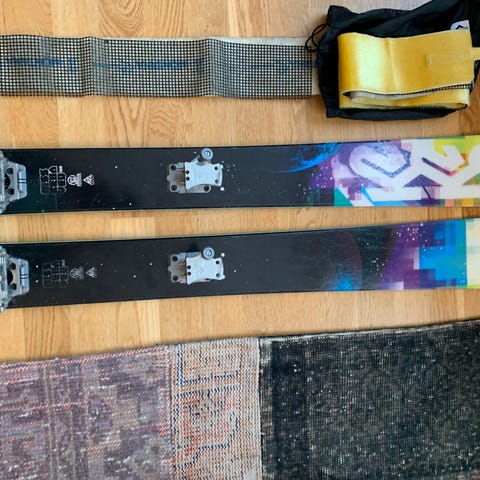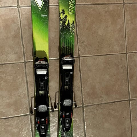 Bindningarna tidigare monterade var Salomon Shift (pluggade hål). Något app på top sheet’en, men försumbart.