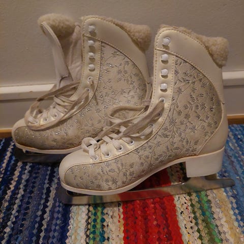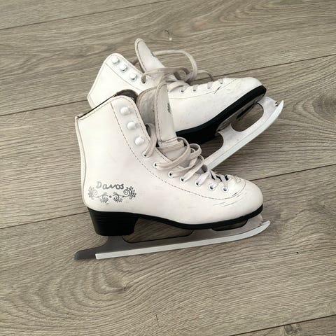Skridskor för barn i storlek 33. Märke Davos. Skridskorna är vita och anpassade för barn. Passar för konståkning, och andra typer av skridskoåkning.