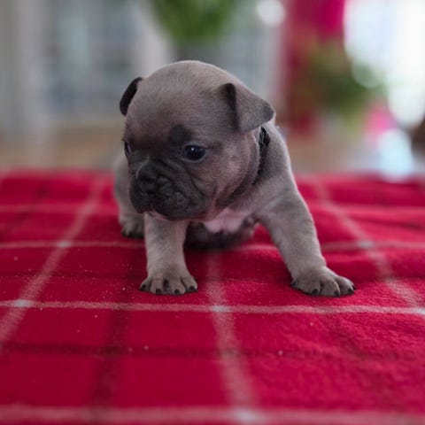 Fluffy Fransk Bulldogg , besiktigad vid 8 veckors ålder utan anmärkning och leveransklar.