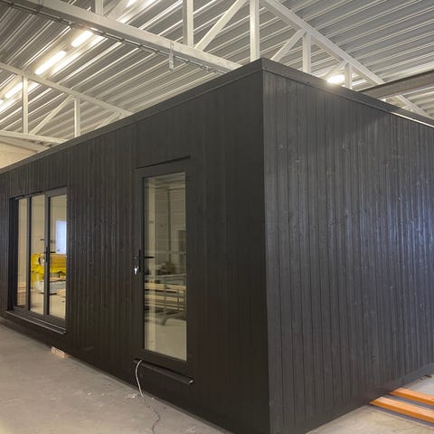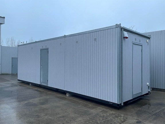 Boden är isolerad och komplett med elinstallationer och armaturer i tak. Byggd på stålram med lyftöglor.