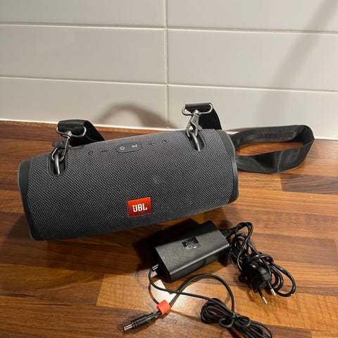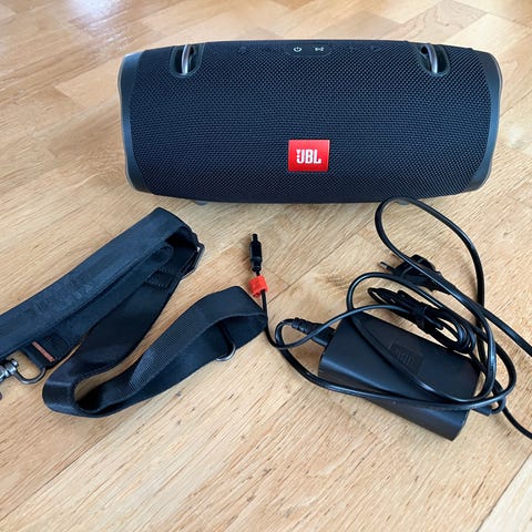 Högtalaren fungerar bra med god batteritid. Laddkabel ingår. Mindre estetiska brister finns (se bilder) och axelrem saknas, därav priset.