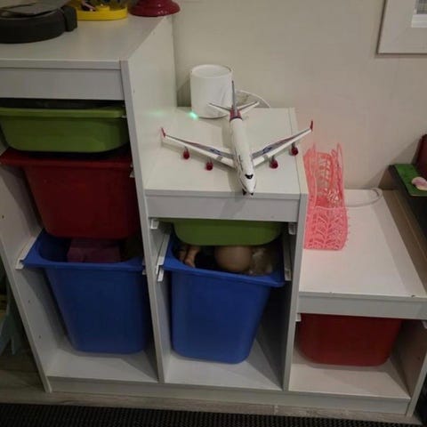 Förvaring med mesh- och plastbackar. Lämplig för organisering och förvaring av barnsaker och leksaker, men även annat. Bild 4 är från IKEAS webbsida.