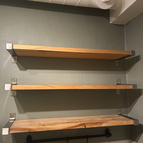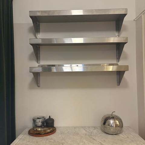Enplanshylla i rostfritt för tex badrum (tex till handdukshylla / handduksstång / - stänger) eller till kök.