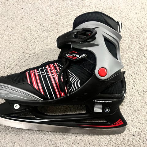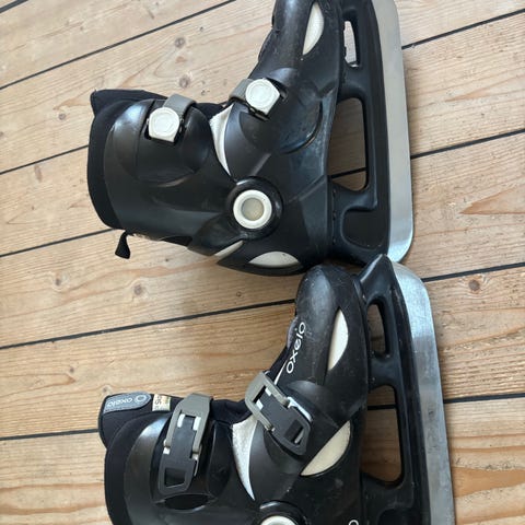 Oxelo skridskor för barn i storlek 34-37, justerbara men passar nog bäst i det lägre storleksspannet. Sparsamt använda.