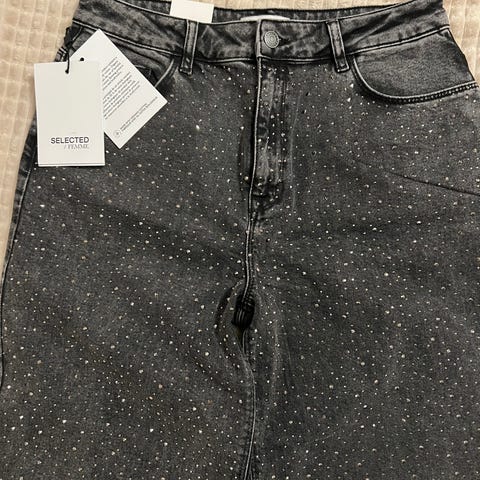 Grå-svarta jeans som aldrig kommit till användning. Passar helt enkelt inte mig :)