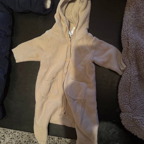H&M beige barnoverall i bomull storlek 62 unisex