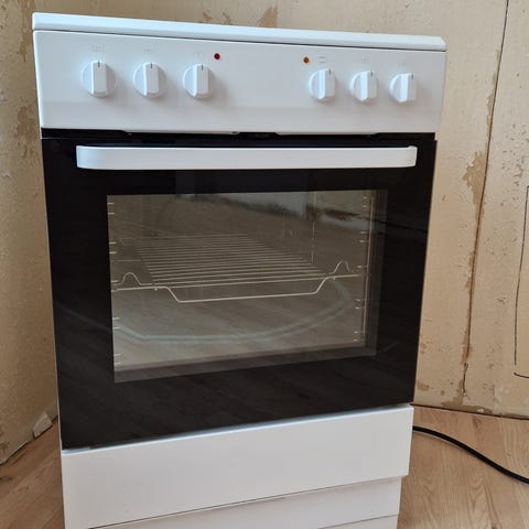 Siemens HE301W25 inbyggnadsugn med svart/vit front. Ugnen har varmluft grill och snabbuppvärmningsfunktioner. Ugnen är aldrig använd och blev ett felköp.