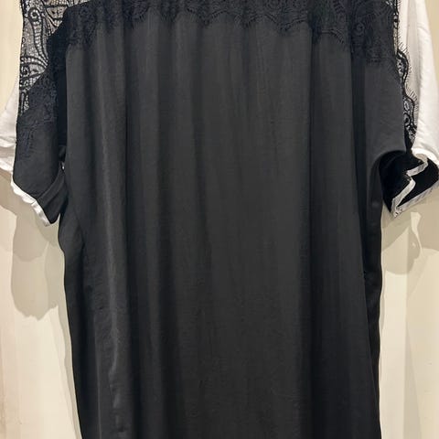 Klänning i svart färg med blommönster, tillverkad i polyestermaterial. storlek L.