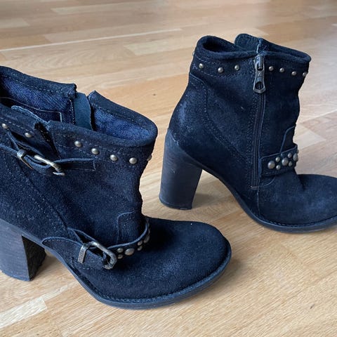 Replay stövlar i storlek 38, beige/ mullvad färg. Tillverkade i mocka med detaljer som spännen och dragkedja för justering och passform.