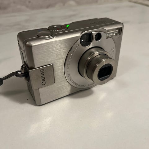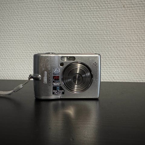 En väl fungerande digitalkamera med minneskort och laddare