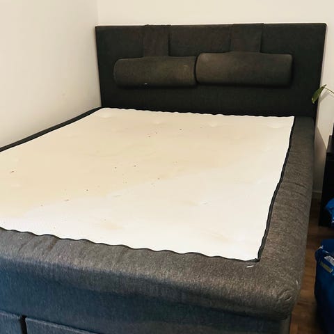 Bäddmadrass Tempsmart som är sval och temperaturreglerande ingår (fläck finns men tyget är avtagbart och går att tvätta)