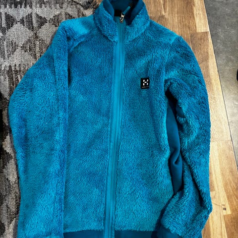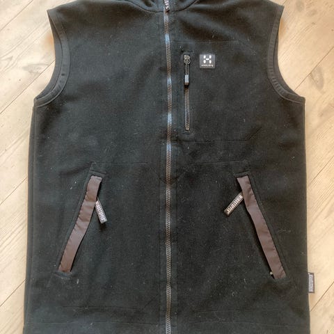 Haglöfs fleecejacka i storlek L för dam. Den har dragkedja framtill och två fickor med dragkedja.