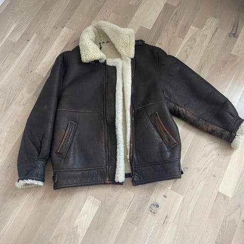 Vintage Hollies Shearlingjacka Brun - Herr XXL – Aviator/Sturmjacka Stil