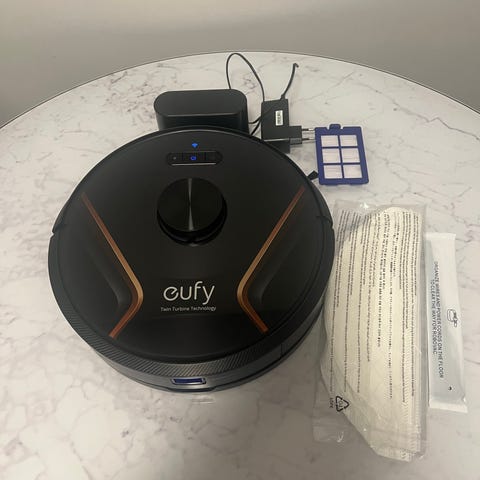 Cleanmate S600 robotdammsugare med svart färg. Utrustad med HEPA-filter, dubbla sidoborstar och trappsensor. Har timerfunktion och kan arbeta enligt ett 4-stegs program som täcker hela golvytan. Höjd: 7,5 cm, vikt: 3 kg. Drifttid upp till 90 minuter. Har både automatisk och manuell laddfunktion.