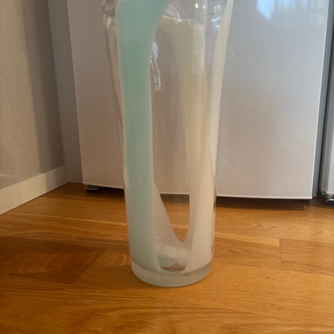 Blå retro glas vas av Sven Palmqvist. Signerad. Från Orrefors, Höjd 17 cm. I fint skick.