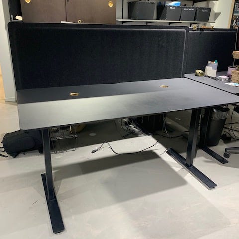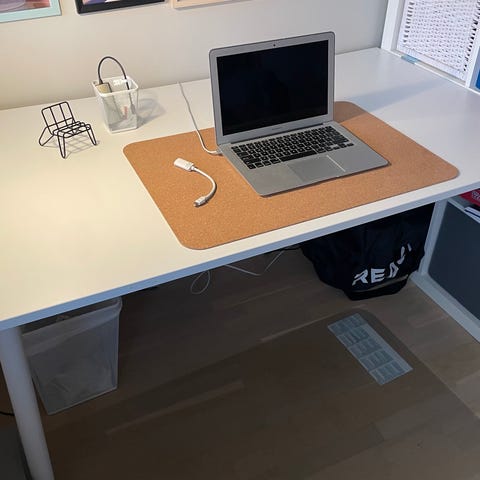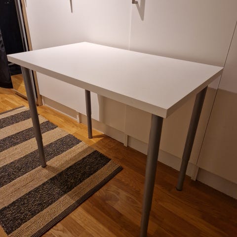 Höj- och sänkbart skrivbord Trotten från Ikea med beige skiva och vitt stativ i gott skick bortskänkes. OBS! Det saknas en sexkantig stav för att bordet ska kunna höjas/sänkas!