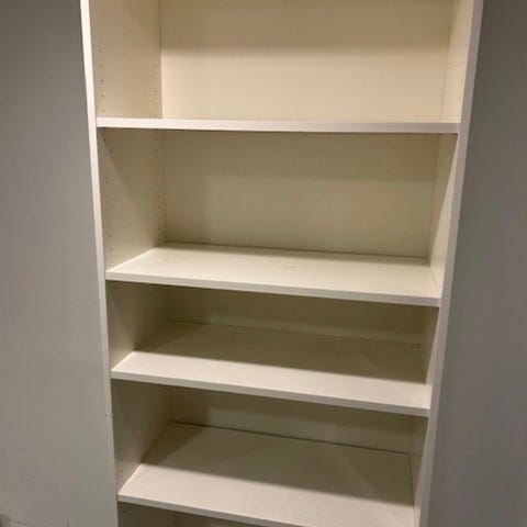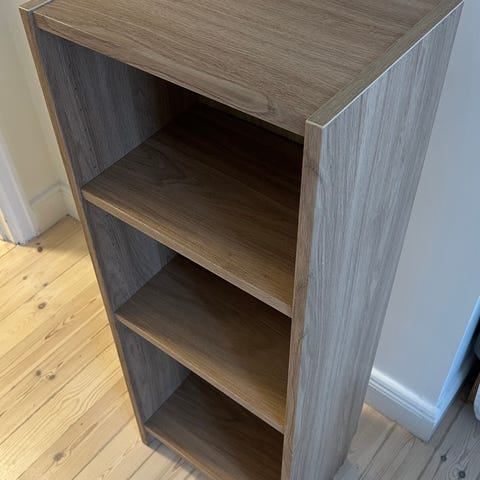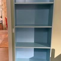 Billy bokhylla som är ommålad utvändigt med en aprikos/rosa snickerifärg ( tempelton pink från Farrow and ball)