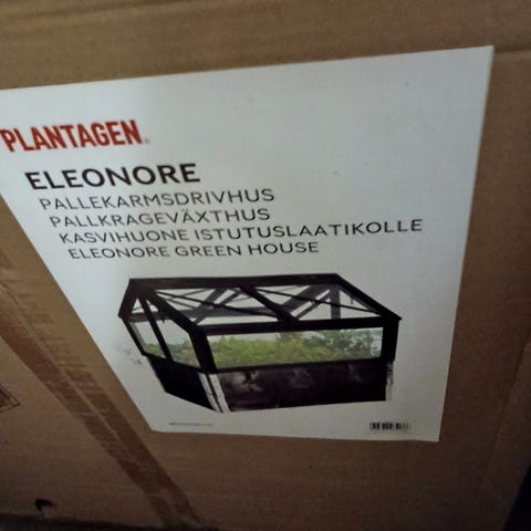 Två förpackningar växthus i glas att ställa på pallkragar. Nya oanvända ligger i oöppnade förpackningar. 800 kr per förpackning. Finns i Norrköping på shurgard