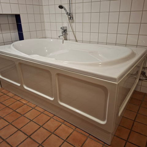 Badkar i vitt med tassar