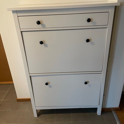 Säljer ett stilrent och praktiskt skoskåp i vitt. Perfekt för hallen tack vare sin smala design – tar lite plats men rymmer ändå flera par skor.