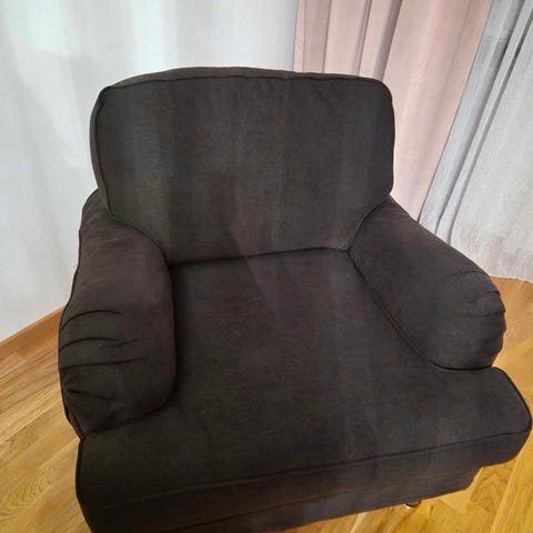 Howardsoffa inkl fåtölj med fotpall. Nypris på Trademax 21999:- Mitt pris 4000:-