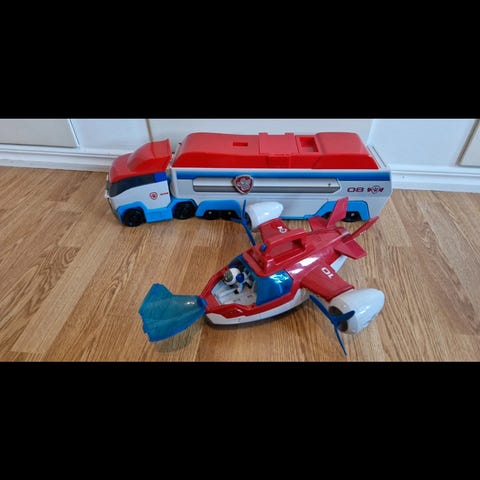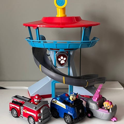 Paw Patrol lekset med ramp och två fordon. Setet inkluderar en ramp med flera nivåer och två små fordon som kan användas för lek och rollspel.