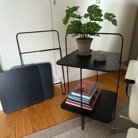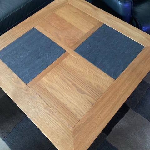 Soffbord och sidobord/sängbord från IKEA ”Stenkulla” ek skiffer. Mått på soffbord höjd: 50 cm. Skivans mått: 122 x 75 cm.