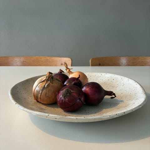 Oregelbundet fat i stengodslera som tål diskmaskin. Servera något gott eller ha det som fruktfat. Mått: 30x22cm För mer av min keramik se Instagram Emlaskeramik
