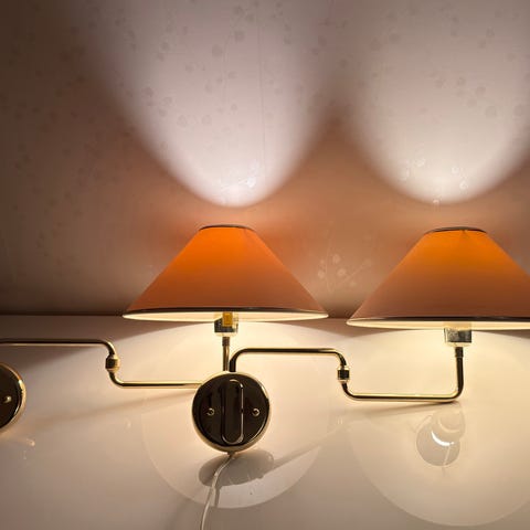 VÄGGLAMPA / 2 Armad / Mässing och Glas / 1950-tal