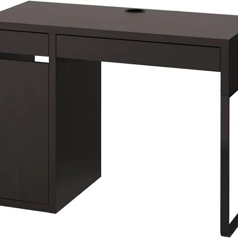 Det är två sladdförvaringar i vit plåt som man skruvar fast under ett skrivbord.