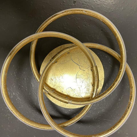 IKEA Gåsgrund Typ T1 402 taklampa. Lampan är rund med vit skärm och metallram. Den har tre ljuskällor med sockel och är avsedd för takmontering. Strömförsörjning 110-240V, 50-60Hz.