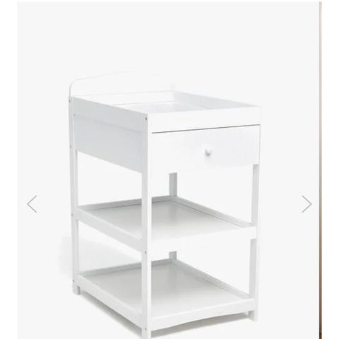 Enkelt och smidigt skötbord med hylla under i vitt. Mått: 87x56x68,5cm.