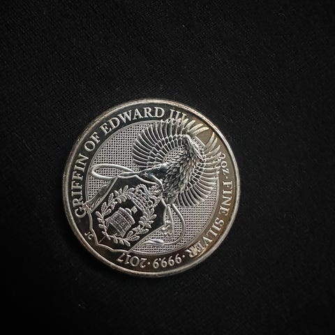 Säljer mynt från Queens Beasts silvermynt med 99,99% renhet Vikten är 2 oz / ca 62.2 gram Drottning Elizabeth II på andra sidan