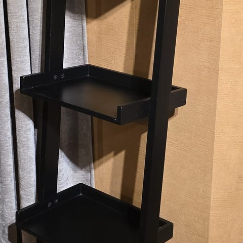 Vit steg /stege hylla lutande med 5 hyllplan. Se bilder för tydliga mått!