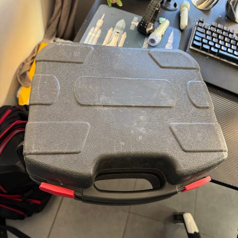 Batteridriven borr och skruvdragare Einhell TE-CD 18 Li. Levereras med laddare, batteri, fullt bitset och praktisk väska.