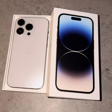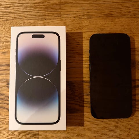iPhone 14 Pro mobiltelefon med 128 GB. 100% batterihälsa