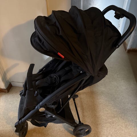 Beemoo barnvagn i svart färg med aluminiumram. Barnvagnen är utrustad med sittdel och sufflett samt säkerhetsbälte och handtag. Passar för barn och är anpassad för daglig användning.