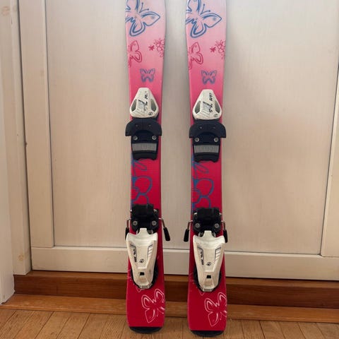 Skidor för barn där man spänner fast en sko/känga.