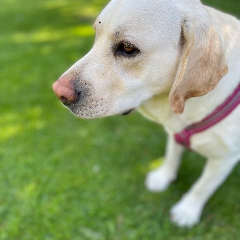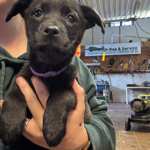 75 % labrador och 25 % border collie. Rar liten tik uppväxt i familj med barn, andra hundar och katt.